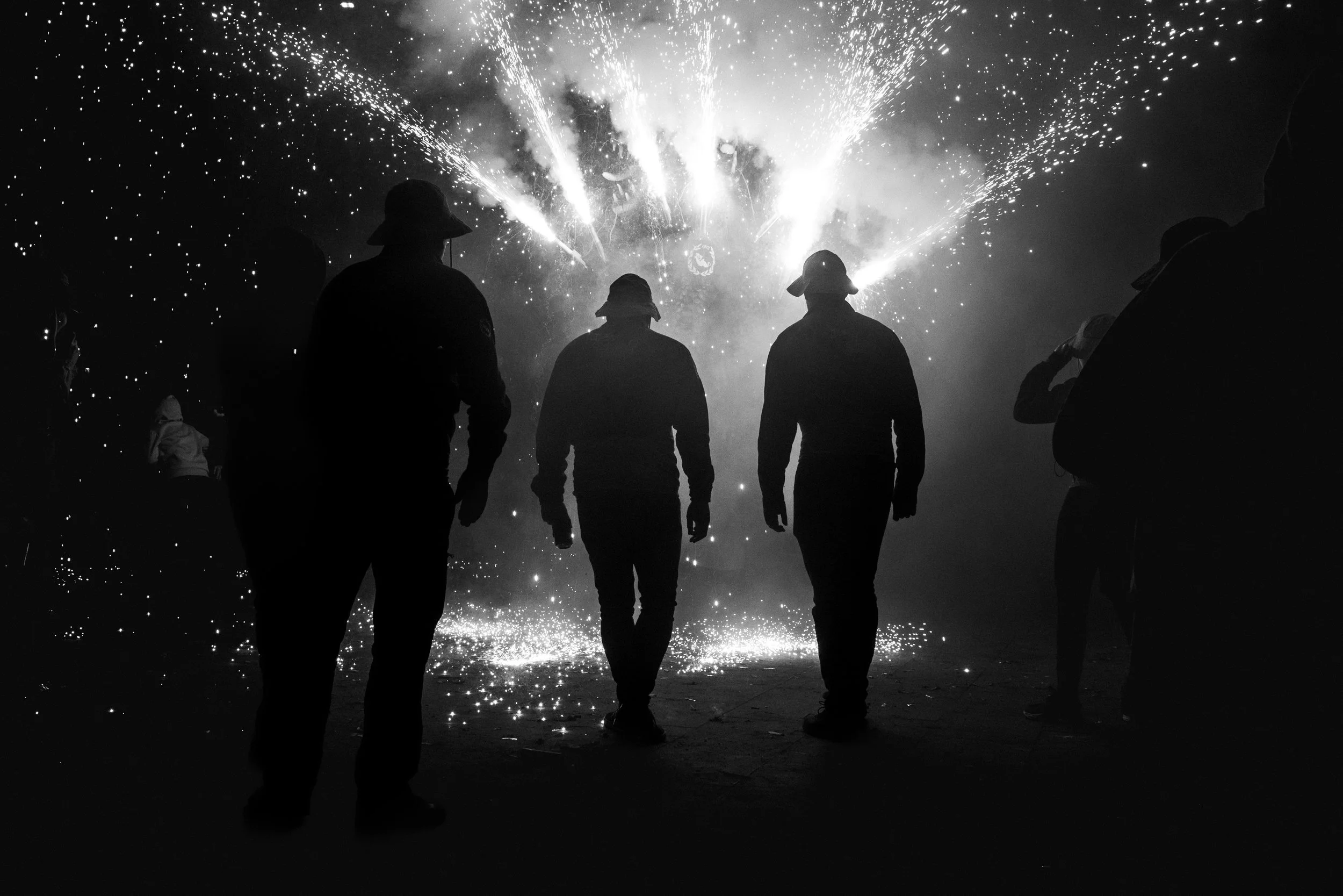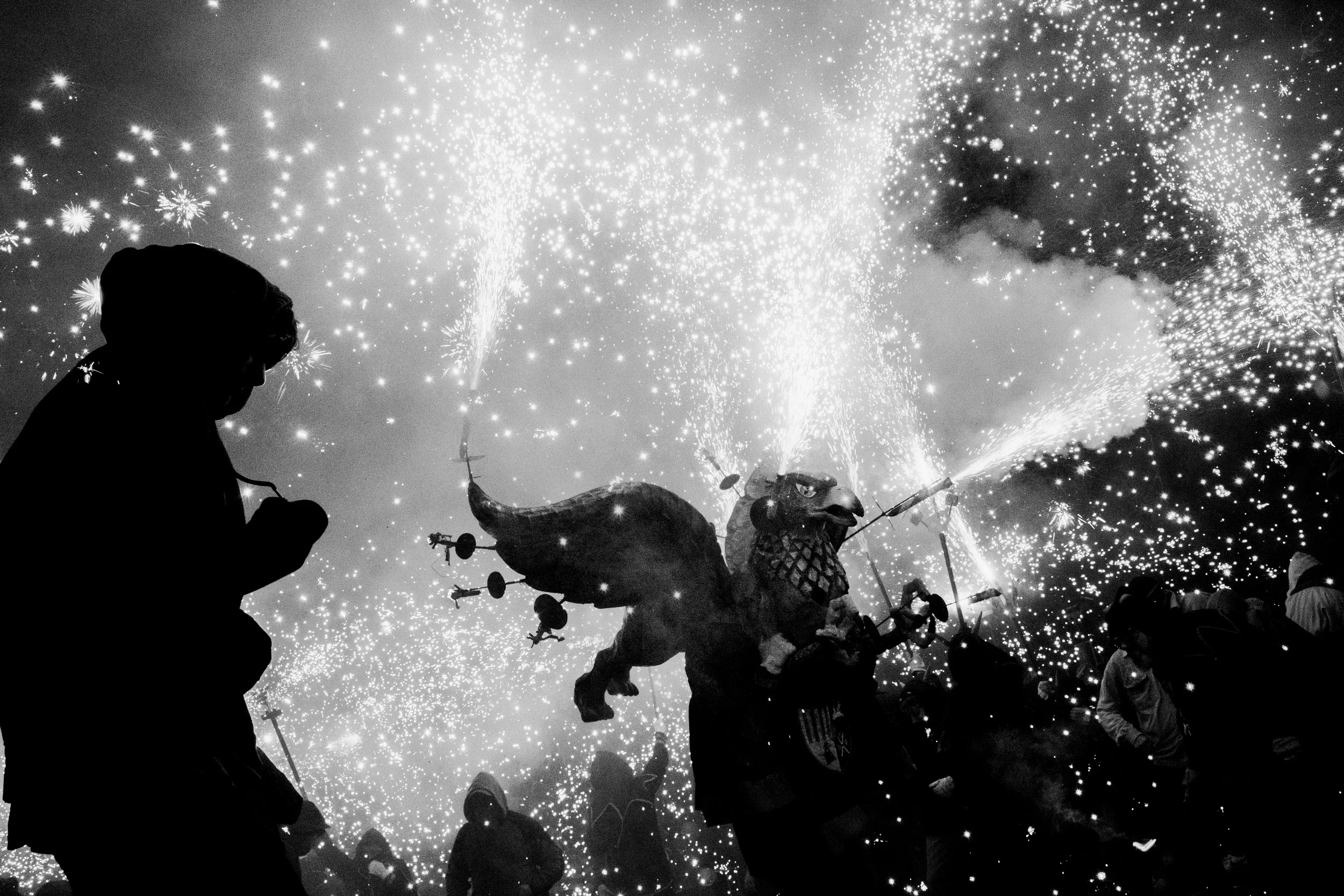 These photos are from Els Diables de Sant Andreu, or the Devils of Sant Andreu, a group who performs pyrotechnics for various festivals, but most importantly, for the Festa Major (or Grand Festival). These are images from last year, that I really love, and this next week this festival in our neighborhood begins again. I’m not sure if I will shoot, but I might. It’s always a grand spectacle and interesting cultural event. It’s mostly fun and fireworks, but also an intriguing kind of defiance; a celebration of darkness and revelry by a people long ruled by an oppressive church. It’s a fascinating group, and definitely a draw for a photographer. We’ll see what I get this year. I’m sure I can’t stay away.